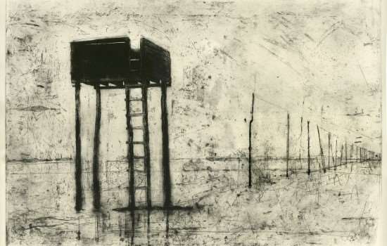Poet, historian and broadcaster Katrina Porteous was commissioned alongside artist and illustrator Olivia Lomenech-Gill to create a new installation for Lindisfarne Priory museum. An edited version of the audio poem The Refuge Box by Porteous was installed alongside a large-scale mixed media artwork, Shifting Sands, by Lomenech-Gill.
