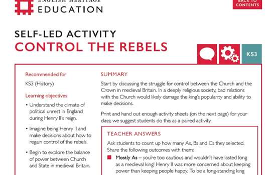 Control the Rebels (KS3) - Orford Castle Teachers' Kit