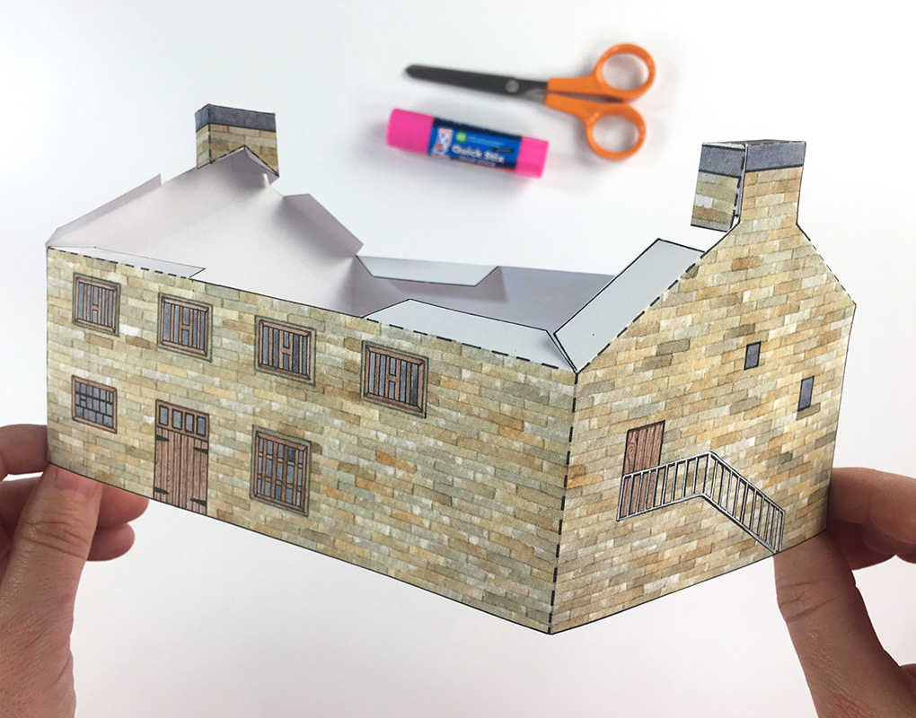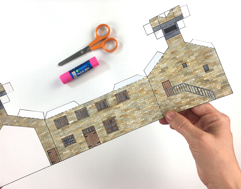 Now you can make your very own model of Stott Park Bobbin Mill. Ask an adult to download the template and print it out for you, then you can follow the instructions below to build the mill.