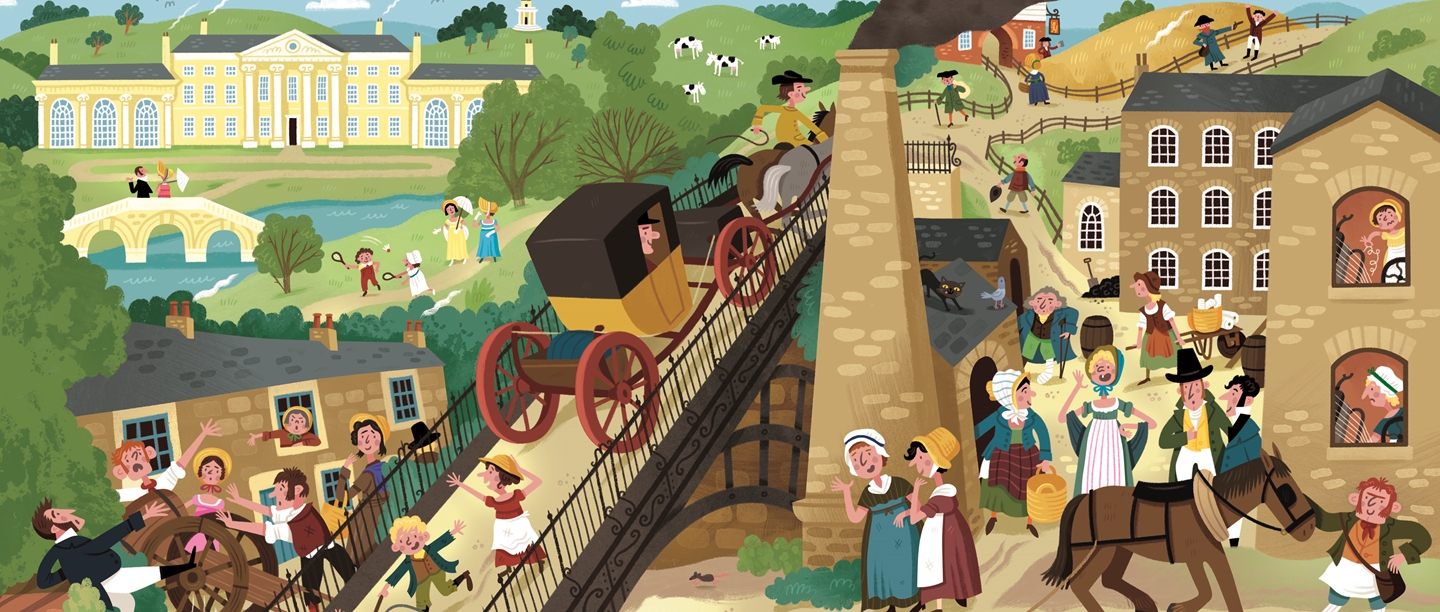 George Stephenson invents a powerful kind of steam locomotive that runs on tracks – the first train.