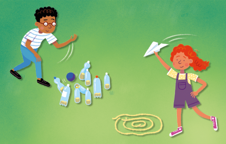 4. Stand around 5 metres back from the pins and count how many goes it takes you to knock down all the pins by throwing a ball at them (try using a tennis ball for this). The player who takes the least number of goes is the winner.