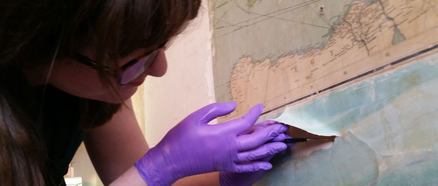After years behind wallpaper, the maps and murals were deteriorating. They were painted onto lining paper, and extremely fragile in places. But thanks to support from the public, conservators were able preserve the room for future generations.