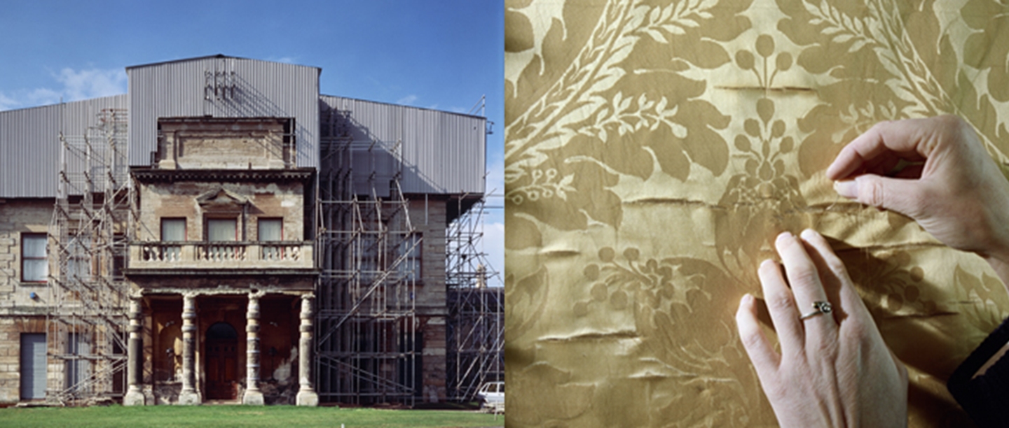 Once the decision was made, work on conserving Brodsworth and its collections could begin. Most of the work entailed stabilising as much as possible to prolong their life without altering them. This included things like ‘first aid’ treatment to the silks by adding netting.