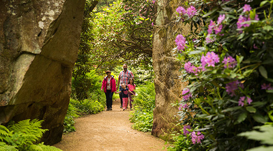The formal gardens have been restored to their appearance in the 1920s and 1930s, while in the quarry garden Sir Arthur’s exotic plantings have now reached their mature picturesque effect.