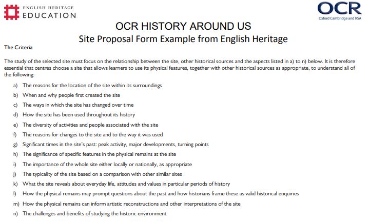 - GCSE History: Study of the historic environment