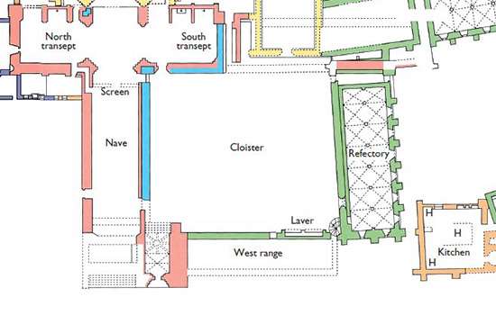 Download this PDF plan of the priory to discover how the monastic buildings developed over time.