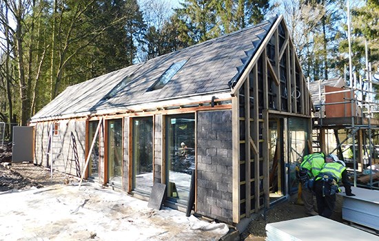 The roof slates were fixed in place during January and now the walls are bring clad.