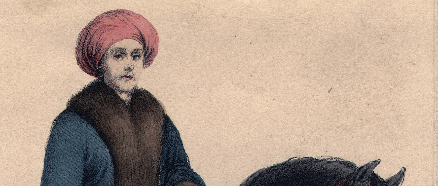 After the shipwreck, the travellers needed new clothes. In the Ottoman world, women were covered and veiled, but Lady Hester adopted local men’s clothing – pantaloons, waistcoat and turban – often in flamboyant style. Against the expectations of her male companions, her defiance of convention and taboo – which might have caused serious offence – instead impressed local people, including several powerful rulers whom she met in the Middle East.