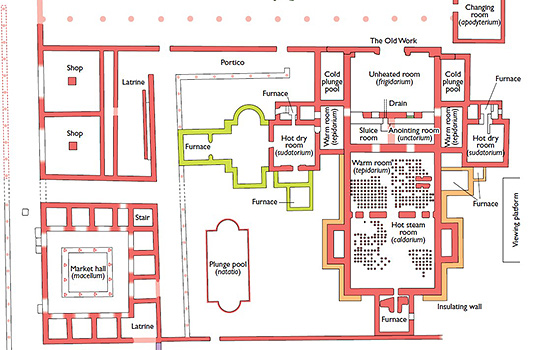 Download this pdf plan of the baths complex at Wroxeter to see how the buildings developed over time.