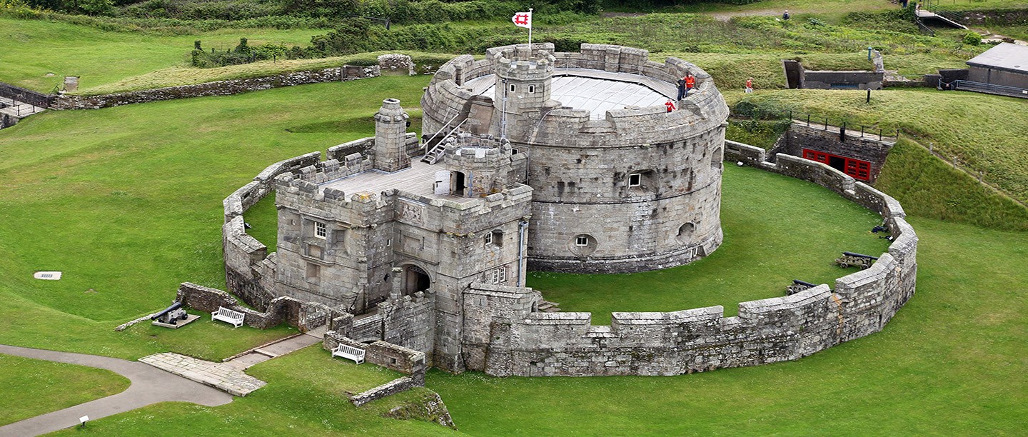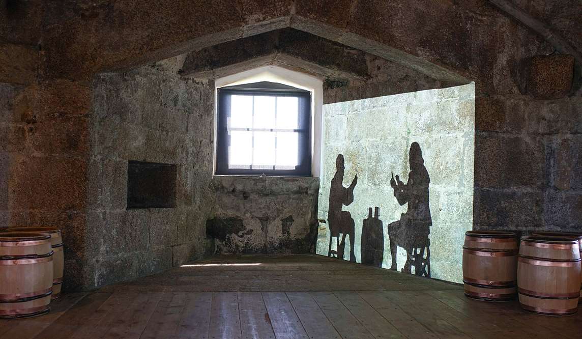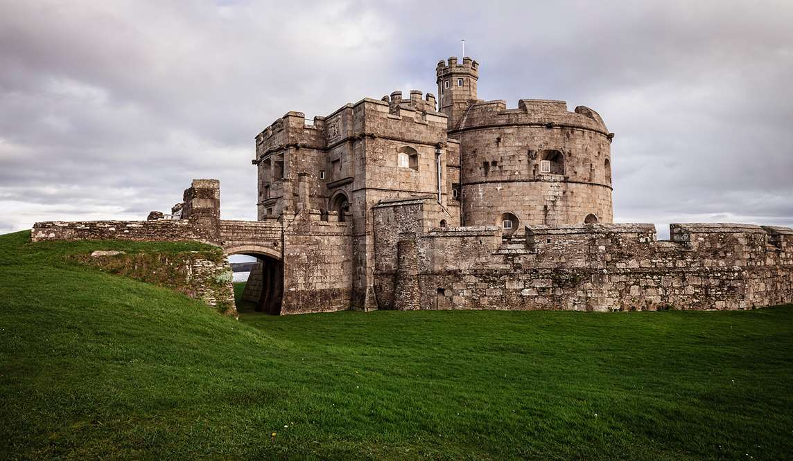 Crossing the stone bridge, enter the castle keep through a wonderful arched doorway with a heavy wooden door and portcullis, topped by the Tudor royal coat of arms. Inside, the unusual octagonal room with thick granite walls and wooden flooring makes an enchanting setting.