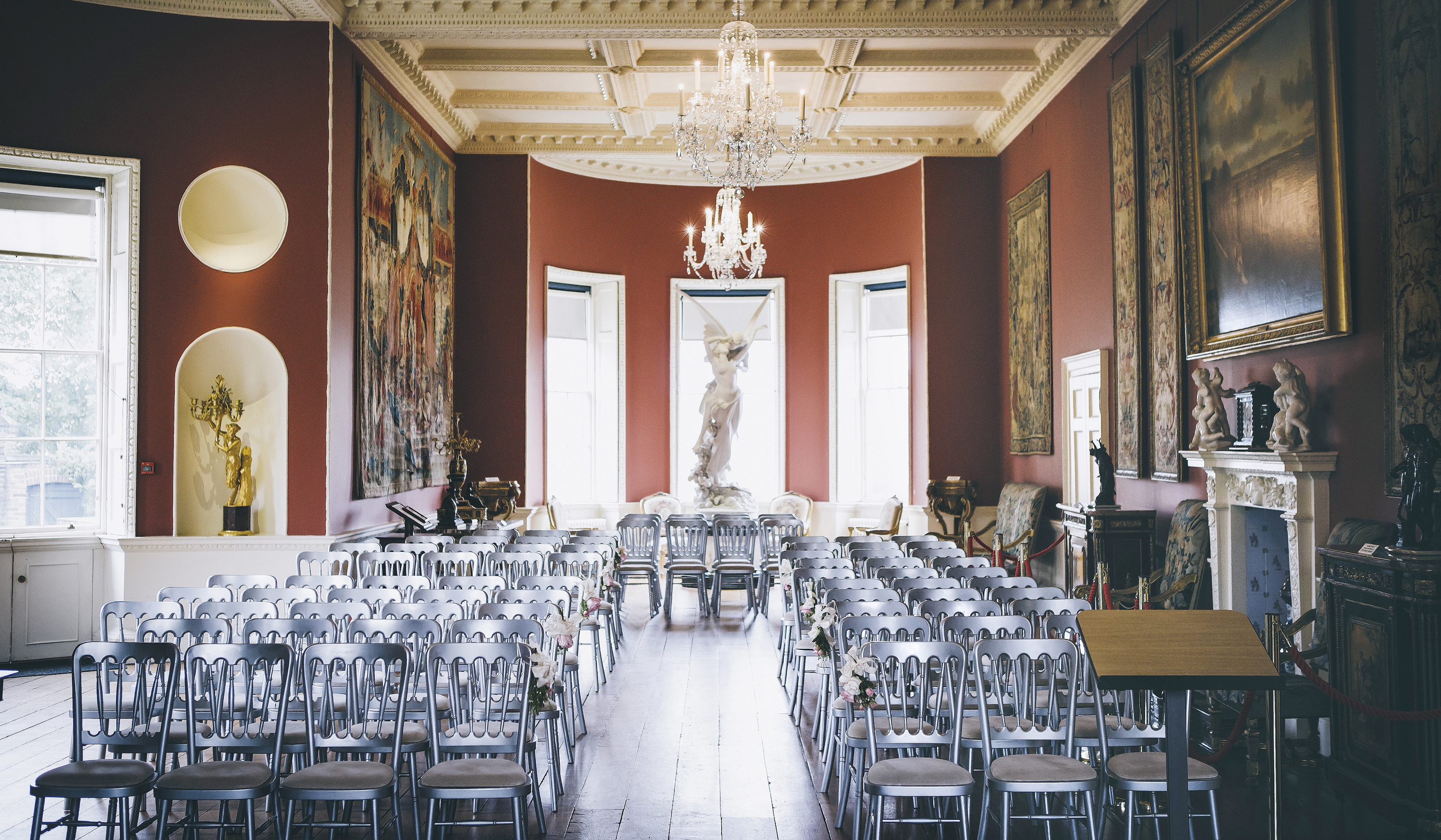Ranger’s House is an elegant Georgian villa on the boundary of Greenwich Park and Blackheath, more recently known as a filming location for the Netflix historical-romance, Bridgerton. Inside The Long Gallery, a room filled with breath-taking statues and beautiful paintings, offering an elegant and romantic space to have your wedding ceremony.